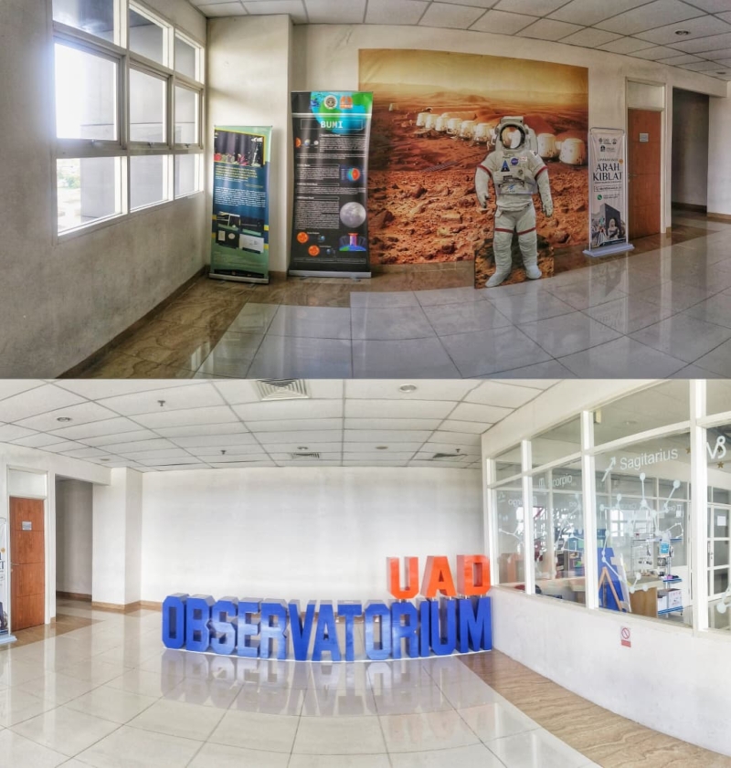 - Ruang Transit, merupakan area untuk berfoto dan bermain bagi anak – anak. Di ruangan ini, terdapat sebuah foto kustom Astronot serta tulisan Observatorium UAD sehingga sangat ideal untuk mengabadikan momen saat berkunjung ke Observatorium UAD.