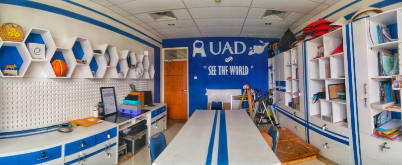 - Ruang Kendali, Ruang Kendali ini difungsikan sebagai area untuk mengendalikan berbagai instrument Astronomi yang dimiliki Observatorium UAD seperti teleskop utama yang berada di Ruang Kubah, intrument pemantauan kondisi langit (All Sky Camera), serta instrument pengukur tingkat kecerahan langit malam (Sky Quality Meter).
