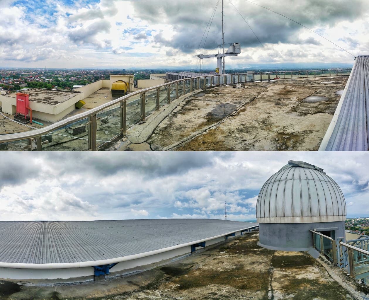 - Ruang Kubah, Ruang Kubah menjadi rumah bagi teleskop utama di Observatorium UAD yang berjenis reflector telescope. Dengan diamater sebesar 5 meter, ruangan kubah bisa dioperasikan dengan membuka shutter dan memutarnya sesuai dengan posisi benda langit saat pengamatan.